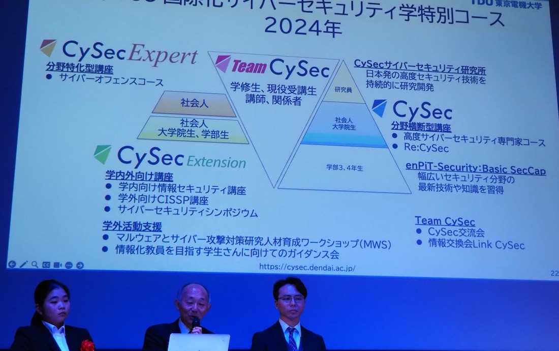 一方、東京電機大学では、社会人向けの履修証明プログラムである「国際化サイバーセキュリティ学特別コース(CySec/サイセック)」を設置することで、大学院レベルの高度なプロフェッショナル人材を育成しています。